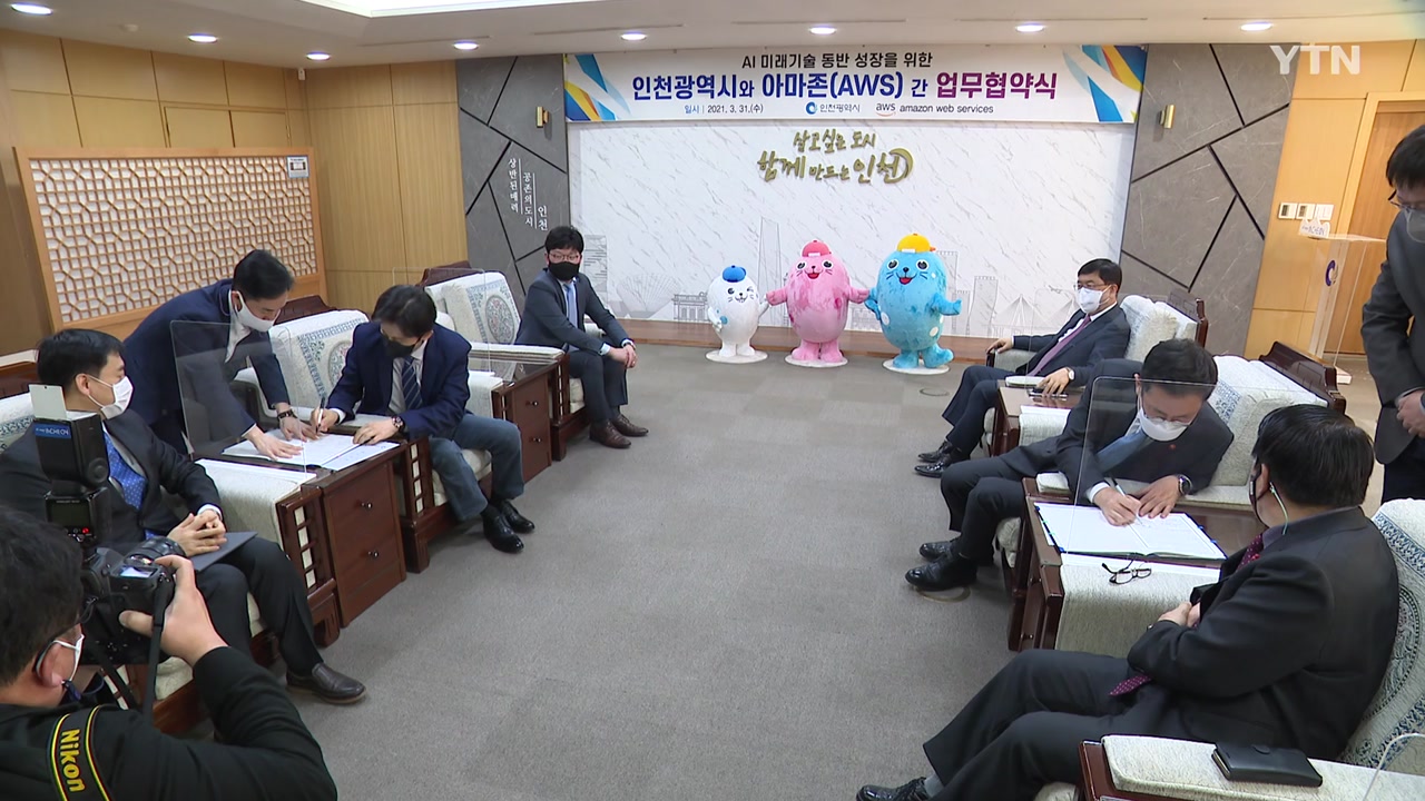 박남춘 인천시장은 윤정원 아마존 웹서비스코리아 대표 등과 함께 AI 미래기술 동반성장을 위한 업무협약을 체결하고 지속 가능한 스마트도시 구현을 위한 인천형 인공지능 생태계를 구축해 나가기로 했습니다.