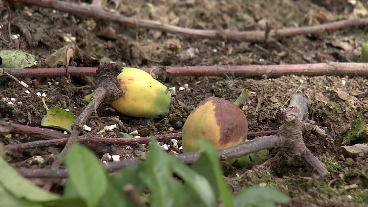 나무에 달려있어야 할 열매들이 모두 땅에 떨어져 있습니다.