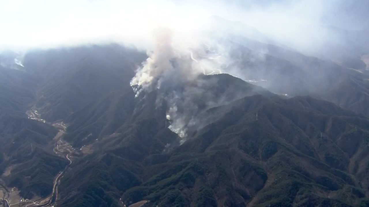 바람 방향이 바뀌고 산골짜기에 연기가 고이면서 헬기 진화에 어려움을 겪고 있습니다.