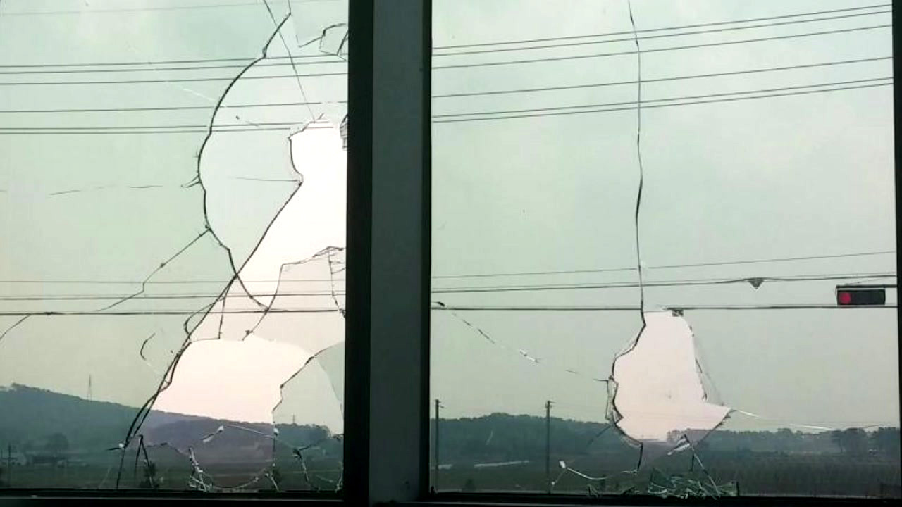 당시 유리창 너머에 여러 소방관이 있었던 만큼 자칫 큰 피해로 이어질 뻔했습니다.
