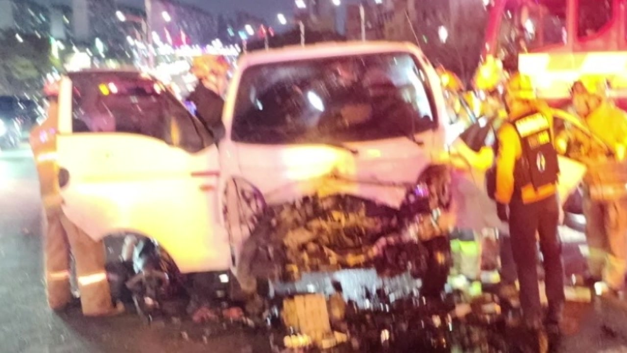 어제(18일) 저녁 8시 반쯤 충남 천안시 불당동의 교차로에서 승용차가 보행자와 차량 두 대를 잇달아 들이받는 사고가 났습니다.