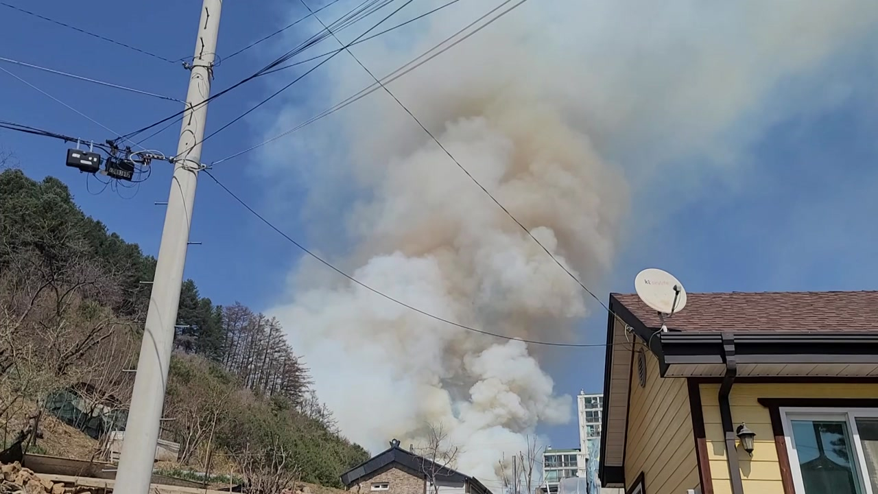 화천군은 주민과 등산객에게 입산 금지 문자 메시지를 보냈고 불길이 마을까지 번질 것을 대비해 마을 인근에 5가구를 긴급 대피시켰습니다.
