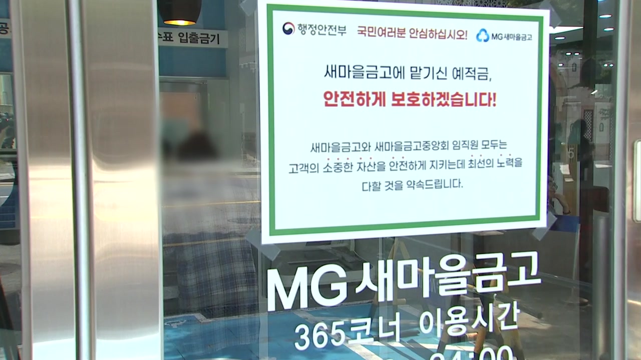 [한창섭 / 행정안전부 차관 : 일부 금고가 인근 금고와 합병되더라도 고객의 모든 예금은 보장됩니다. 예·적금이 5천만 원을 초과하더라도 합병한 금고에서 원금과 이자를 지급합니다.]