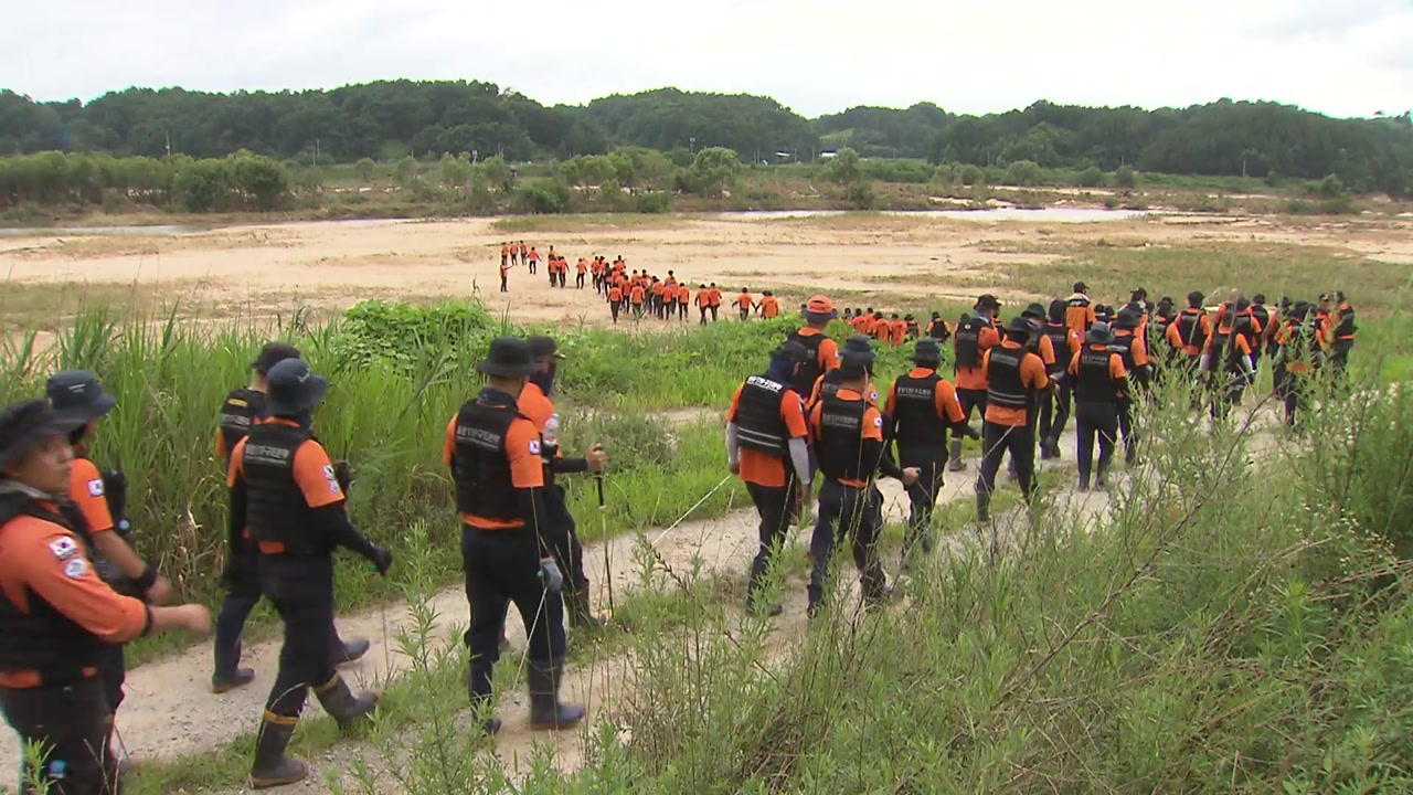 경찰과 소방, 군은 사고 열흘째인 오늘(24일) 인력 500여 명과 헬기 7대, 구조견 13마리 등을 투입해 하천과 매몰 추정지를 수색하고 있습니다.
