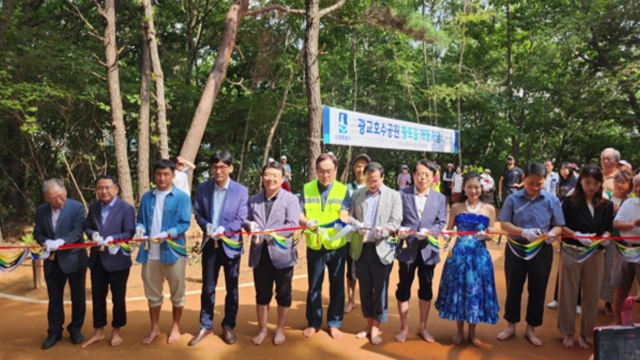 수원시는 광교호수공원에 맨발로 걸을 수 있는 황톳길을 조성했습니다.