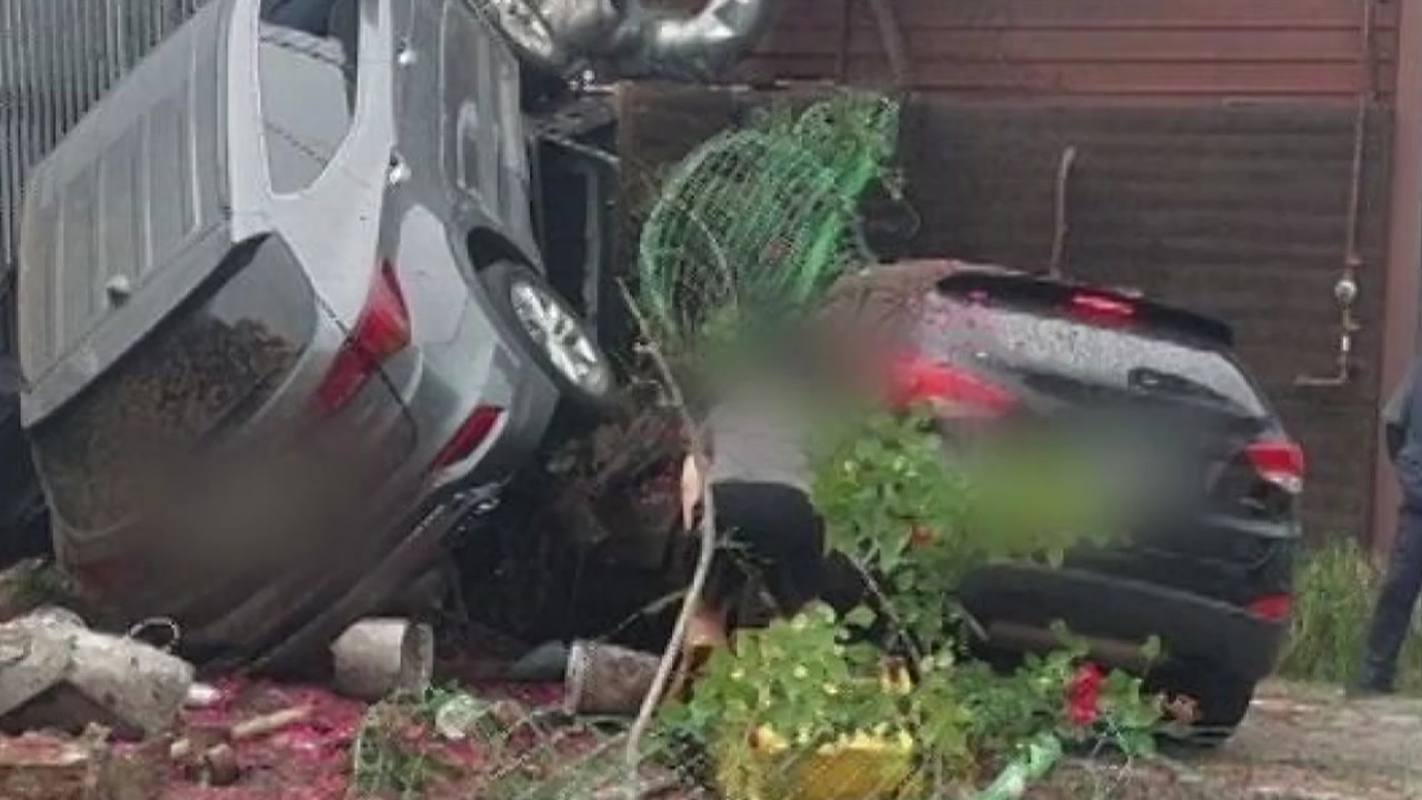사고 이후 SUV 차량은 다시 전방 150m가량 돌진해 다른 SUV 차량과 건물 외벽을 충돌했습니다.
