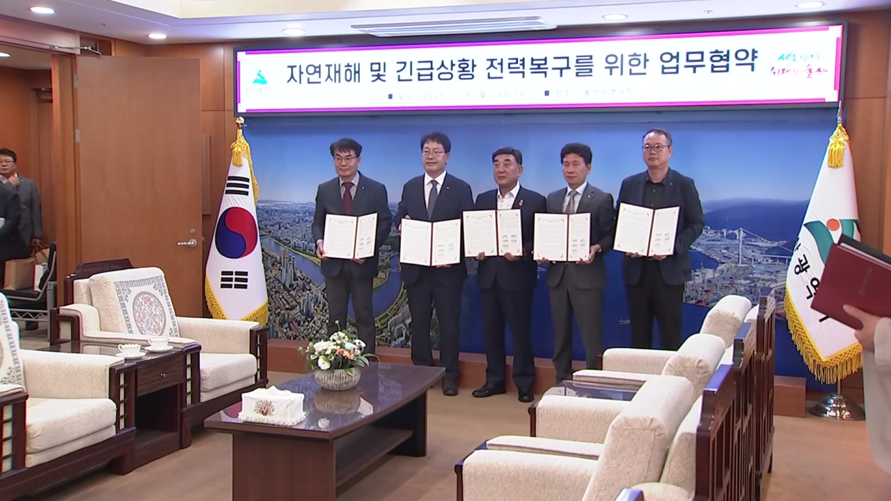 울산시가 한전 등 전력 관계 기관 4곳과 '자연재해 및 긴급 상황 전력 복구' 업무협약을 맺었습니다.