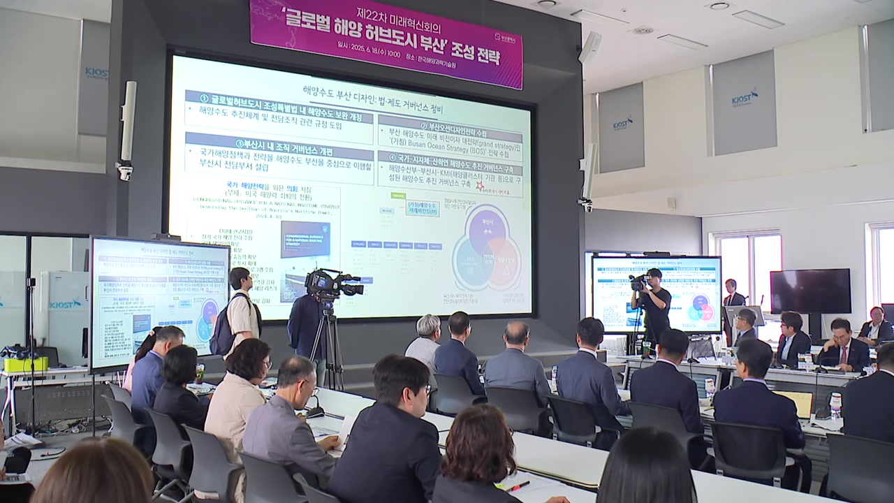박형준 부산시장이 한국해양과학기술원에서 열린 제22차 부산미래혁신회의에서 '글로벌 해양 허브 도시' 조성 전략을 발표했습니다.