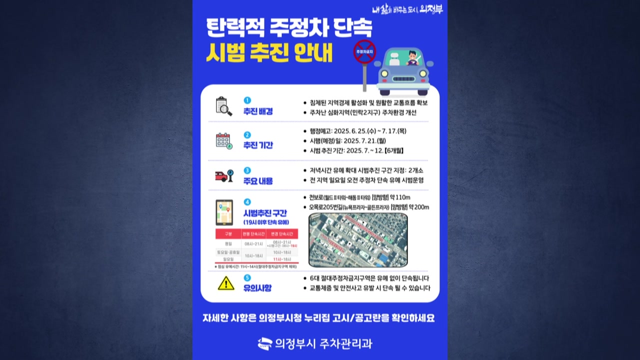 의정부시는 종교 활동이나 운동 등 휴일 여가 수요에 대응하기 위해 다음 달 21일부터 여섯 달 동안 시범적으로 일요일 오전 불법 주정차 단속을 유예한다고 밝혔습니다.