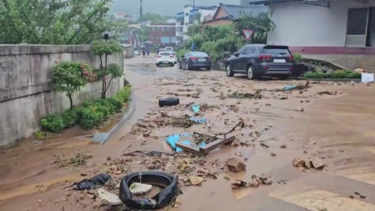 흙더미와 타이어 등 잔해도 쓸려 내려와 도로에 그대로 남은 모습을 볼 수 있는데, 제보자는 굴착기가 투입돼 복구하고 있다고 전했습니다.