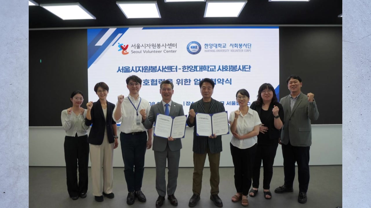 서울시자원봉사센터와 한양대학교가 대학 내 자원봉사 활성화를 위한 업무협약을 맺었습니다.