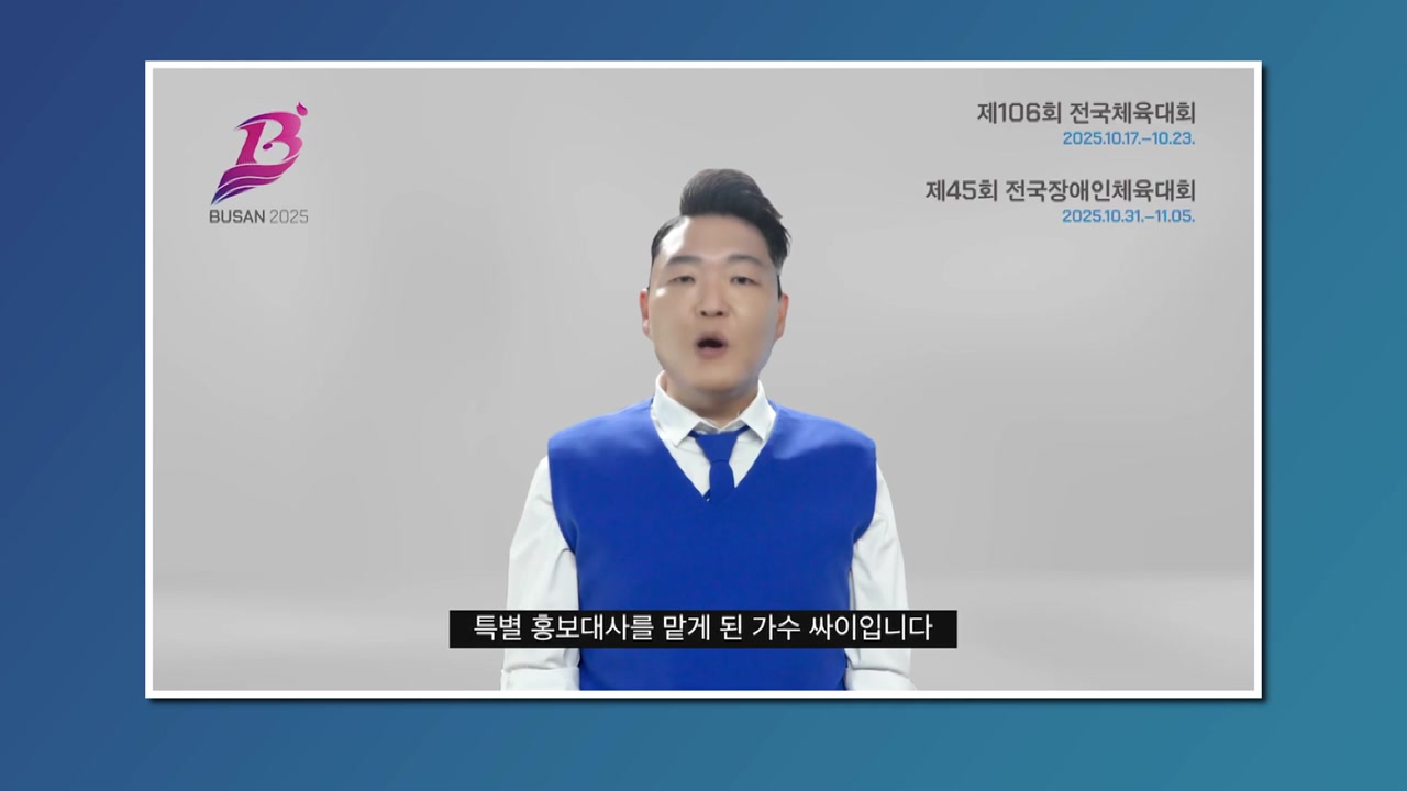 부산시가 오는 10월 부산에서 열리는 전국체전과 전국장애인체전 특별 홍보대사로 가수 싸이를 위촉했습니다.