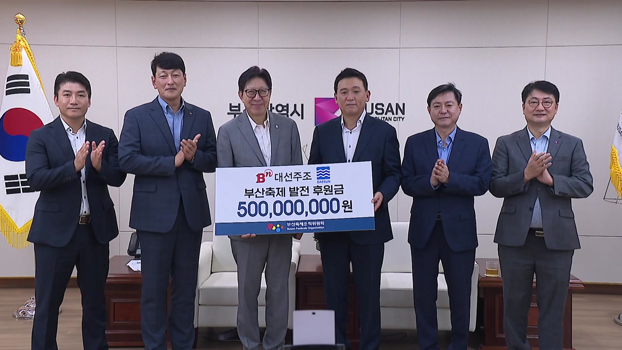 부산지역 향토기업인 대선주조가 지역 축제 발전 후원금으로 5억 원을 부산시에 전달했습니다.