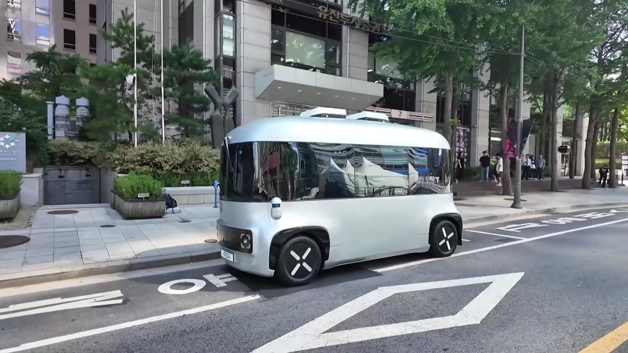 국내 기업이 개발한 11인승 소형 버스로 운전석과 운전대가 아예 없고, 안전요원이 타지만 운전에는 관여하지 않습니다.