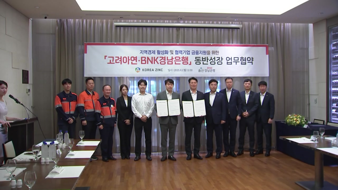협약에 따라 고려아연은 200억 원을 경남은행에 맡기고 경남은행은 최대 연 4.1% 우대 금리를 적용해 대출에 나서 협력사 발전을 돕습니다.