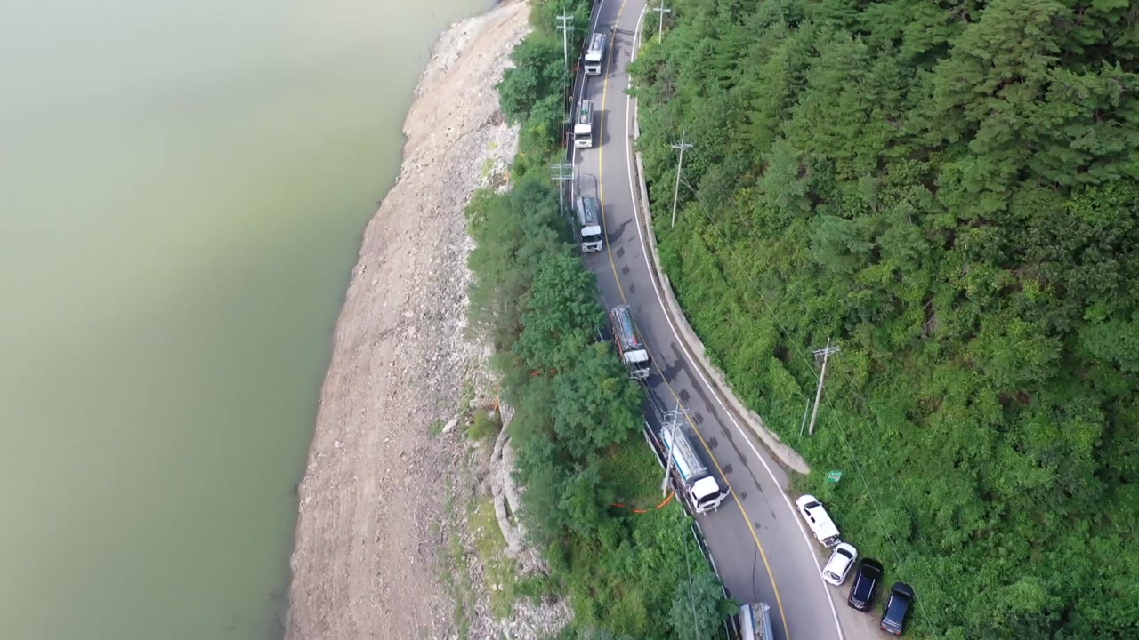 15톤 살수차 400대를 투입해 하루 1만5천 톤씩 저수지에 물을 채워 넣고 있습니다.