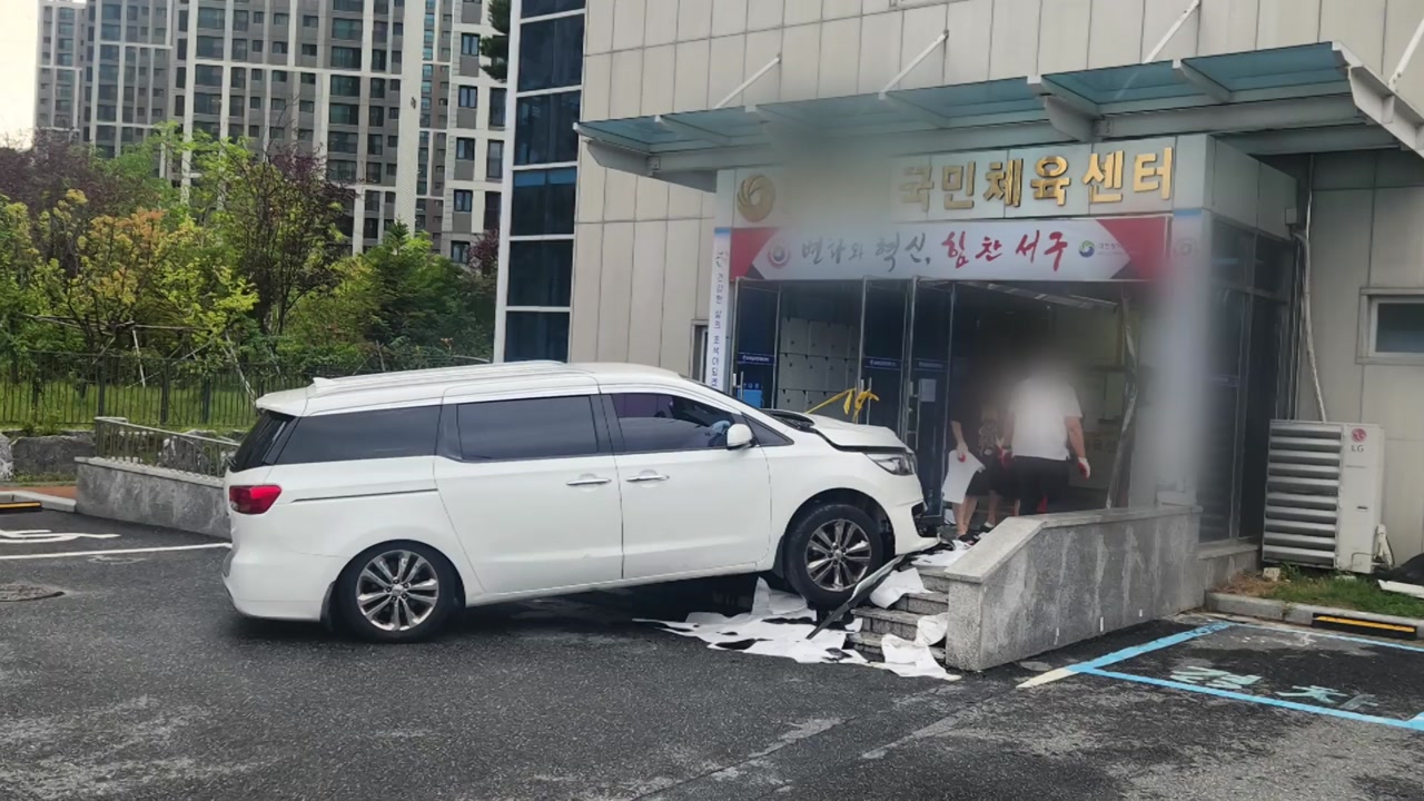 오늘(9일) 오후 3시 20분쯤 대전 도마동에 있는 체육센터 정문으로 70대 A 씨가 몰던 SUV가 돌진했습니다.