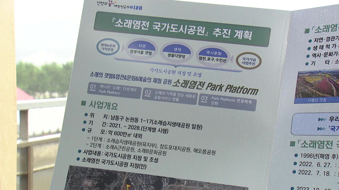 인천시가 국가도시공원 지정 요건과 국비 지원 범위가 확대된 것을 계기로 소래습지와 해오름공원, 람사르습지, 장도포대지 등 약 600만㎡를 통합한 '소래염전 국가도시공원' 지정을 전국 최초로 추진하기로 했습니다.
