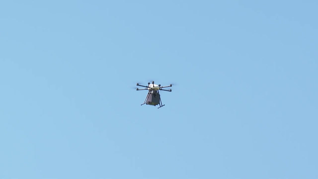 이천시가 모가면 로봇드론창업지원센터와 복하천 제3수변공원 캠핑장 사이에서 지역 특산품인 '이천한돈'을 드론으로 배송하는 시연식을 열었습니다.