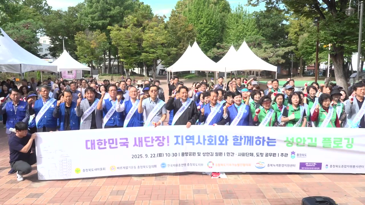 충청북도가 청주 중앙공원과 성안길 일원에서 민간사회단체와 함께 조깅하며 쓰레기를 줍는 행사인 이른바 플로깅 행사를 열었습니다.
