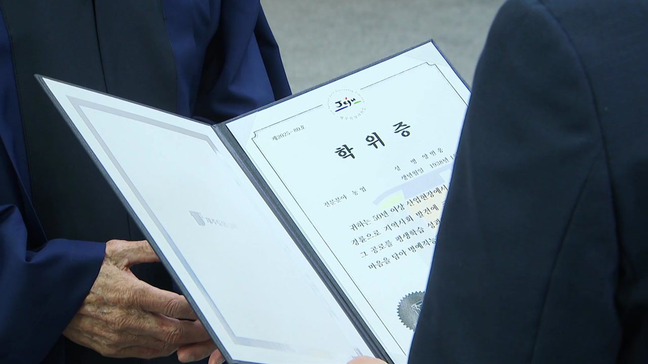 제주도는 전국에서 처음으로 시행한 '도민대학 명예직능학위제' 학위증 수여식을 열었습니다.