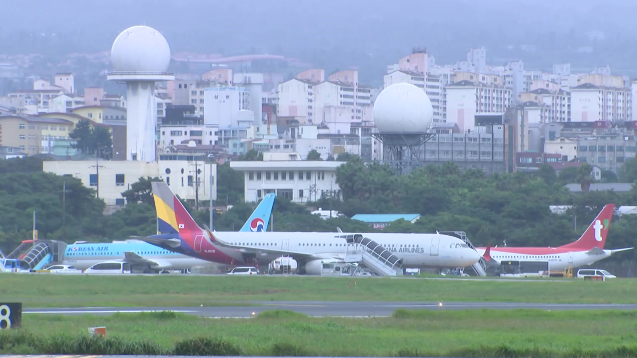 제주공항에도 급변풍과 강풍특보가 발효돼 기상 악화와 연결편 문제 등으로 180여 편의 항공편이 지연 운항하고 있습니다.