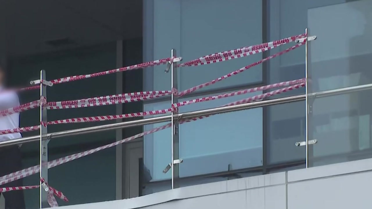 유리 난간이 떨어져 나가 있고, 현장 주변에는 출입을 막는 통제선이 내걸렸습니다.