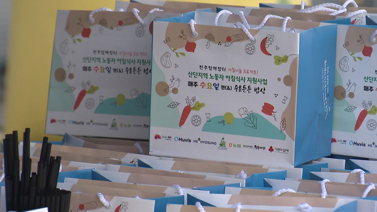 지역 기업들이 모은 기부금으로 지역 가게에서 아침을 마련하고, 그렇게 준비된 한 끼가 노동자들에게 전해지는 겁니다.