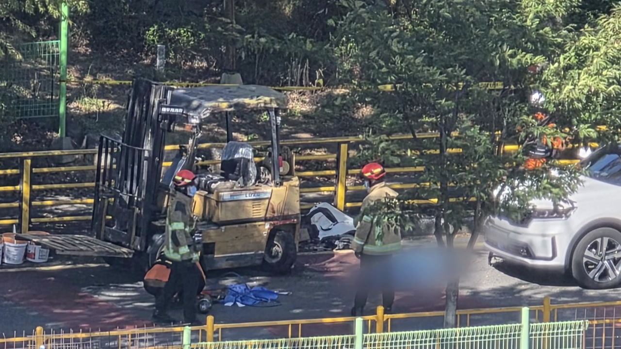 숨진 남성은 지게차 운전자로, 차에서 내려 노면을 살펴보다가 사고를 당한 것으로 알려졌습니다.
