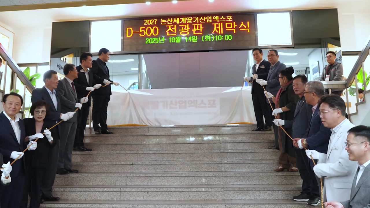 충남 논산시는 '2027 논산세계딸기산업엑스포' 개막 500일을 앞두고 시청 중앙현관에서 D-500 기념 전광판 제막식을 진행했습니다.