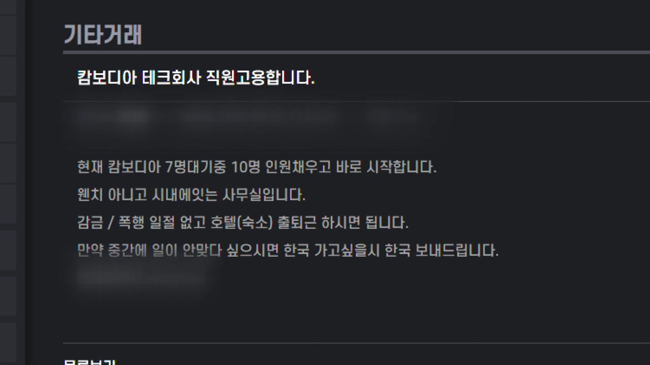 캄보디아에서 숨진 대학생 A 씨도 학교 선배인 대포통장 모집책에게 이런 내용을 전해 듣고 출국한 것으로 추정됩니다.