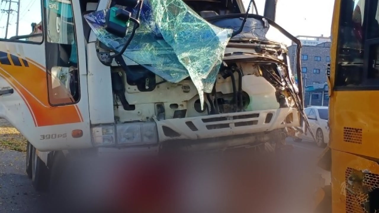 어제(17일) 오전 7시 50분쯤 대전 서구 정림삼거리에서 70대 운전자 A 씨가 몰던 덤프트럭이 정차 중이던 통학버스를 들이받았습니다.