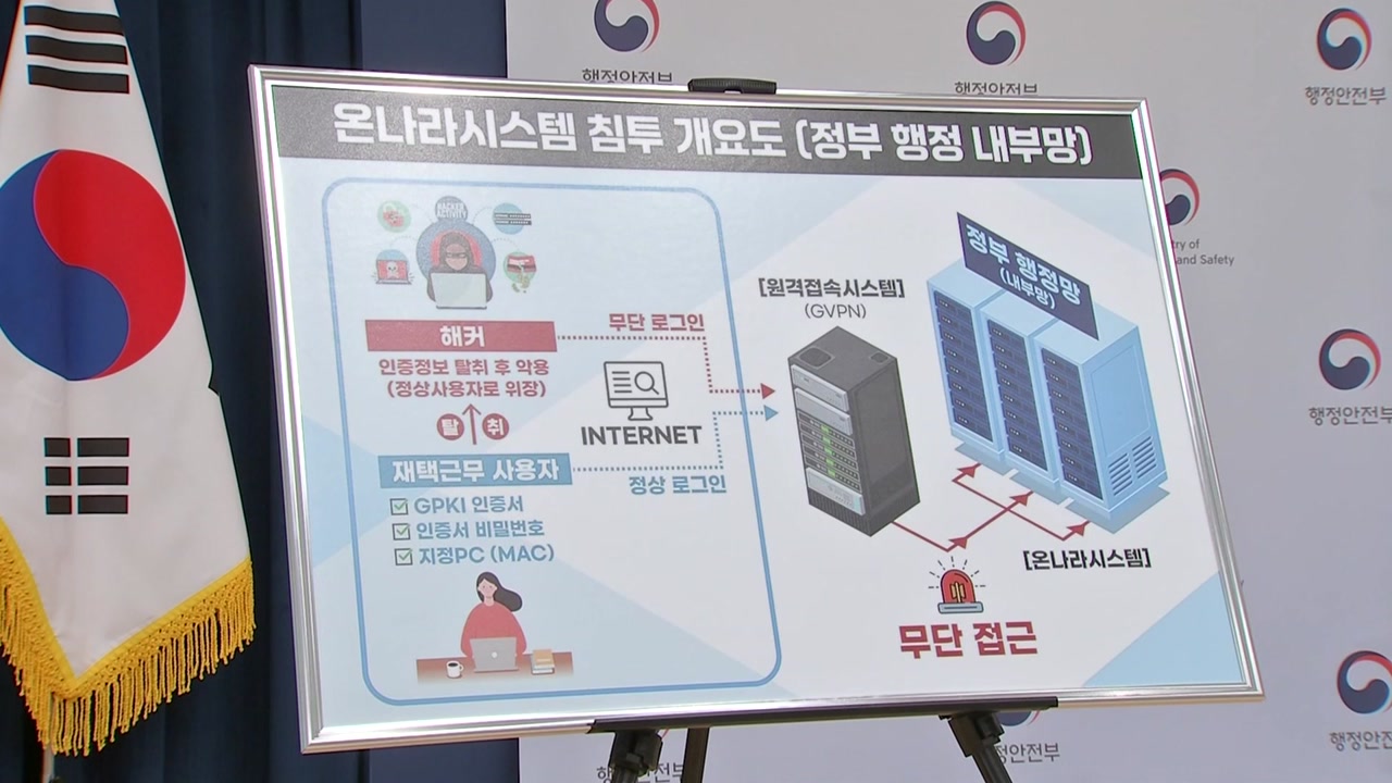 해킹 침해를 확인한 행안부는 정부원격근무시스템에 접속할 때 행정전자서명 인증과 더불어 전화인증을 반드시 거치도록 보안을 강화하고, 온나라시스템 로그인 재사용 방지 조치를 완료해 중앙부처와 지방자치단체에 적용했다고 말했습니다.