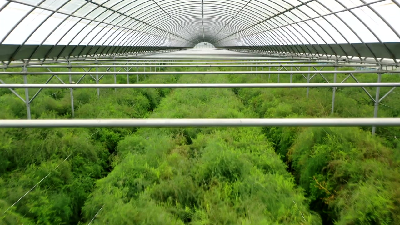 초록빛 아스파라거스가 하우스 가득 곧게 자라고 있습니다.