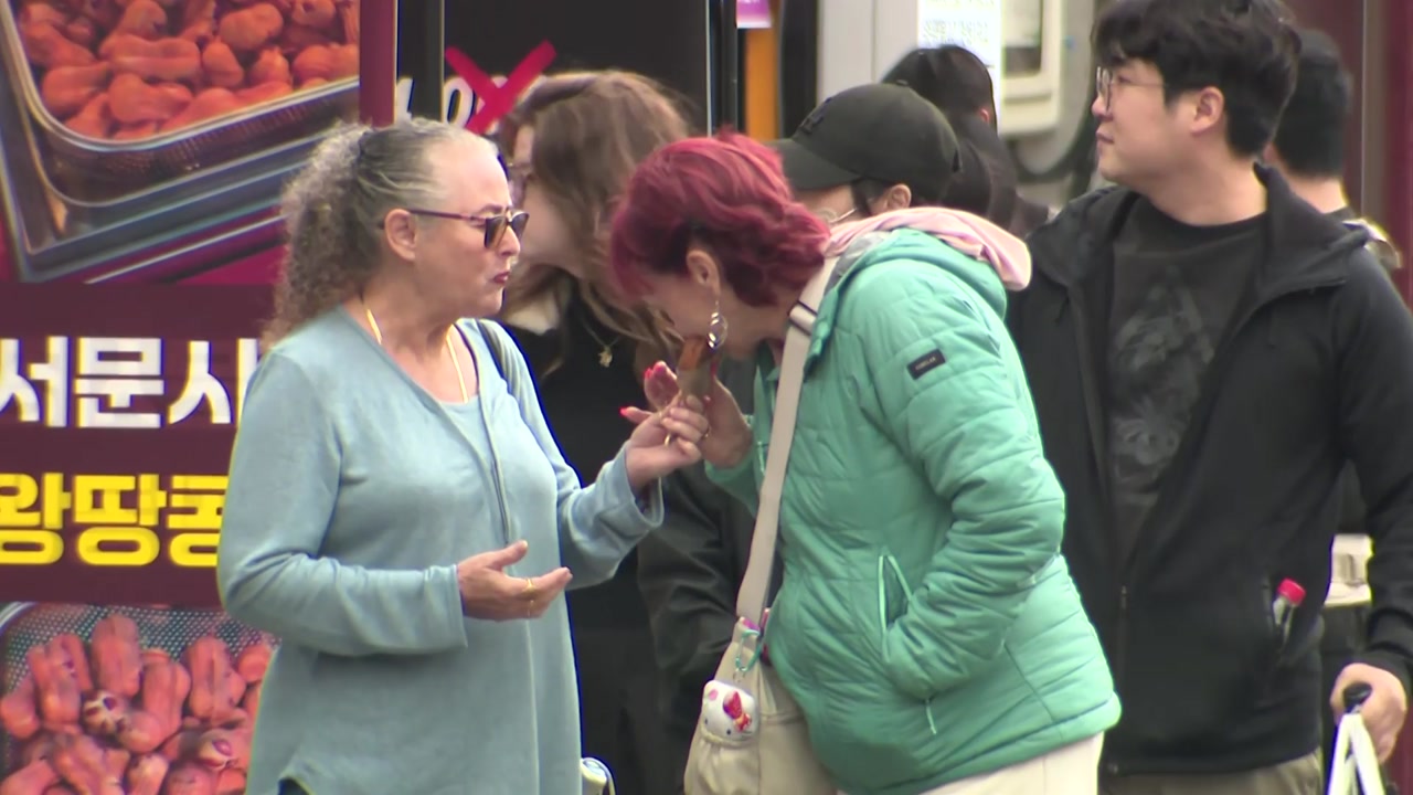 외국인 관광객들도 한옥 아래 색다른 길거리 음식을 맛보며 여행의 즐거움을 만끽합니다.