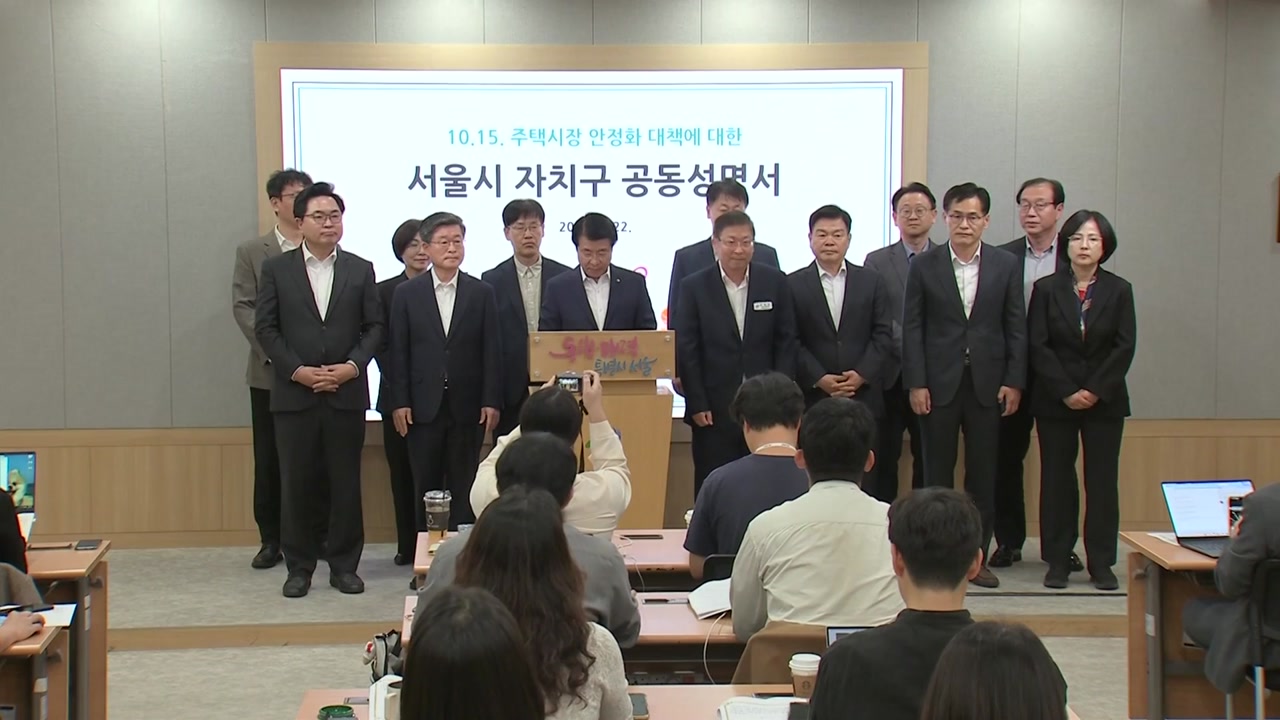 서울 지역 야권 구청장들이 이끄는 15개 자치구가 정부의 10·15 부동산 대책과 관련해 토지거래허가구역 서울 전체 지정을 즉각 철회하거나 최소화하라고 촉구했습니다.