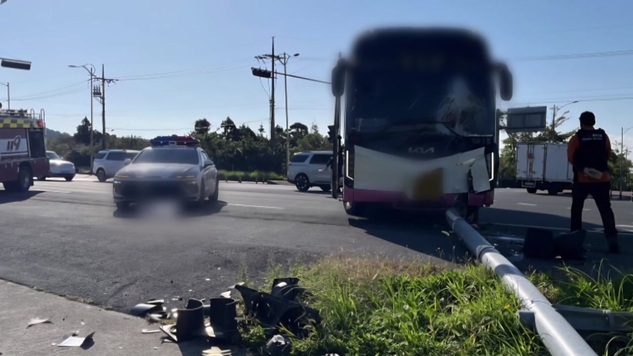 오늘(24일) 오전 9시쯤 제주 서귀포시 안덕면에서 수학여행단 27명을 태운 버스가 교통 표지판을 들이받았습니다.