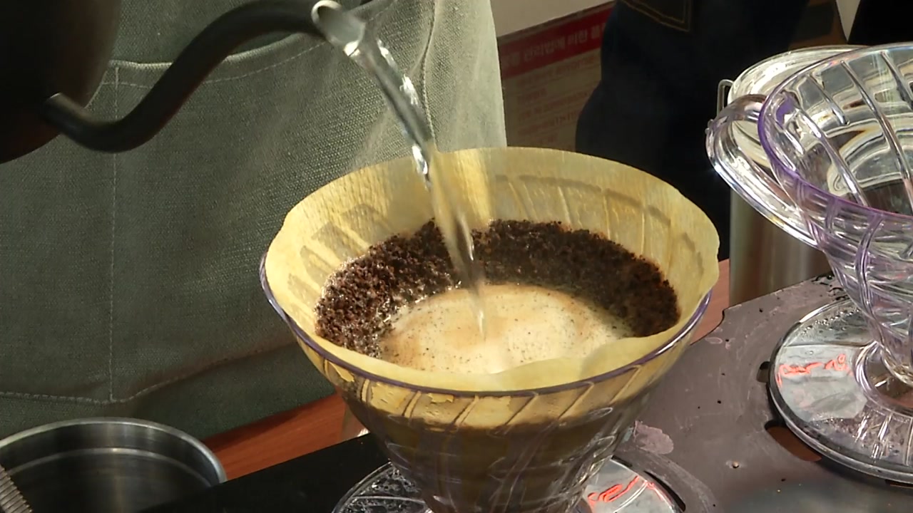 특히 K-커피 홍보관에서는 전남에서 재배한 커피를 갈아 직접 내려주는데, 긴 줄이 늘어섰습니다.