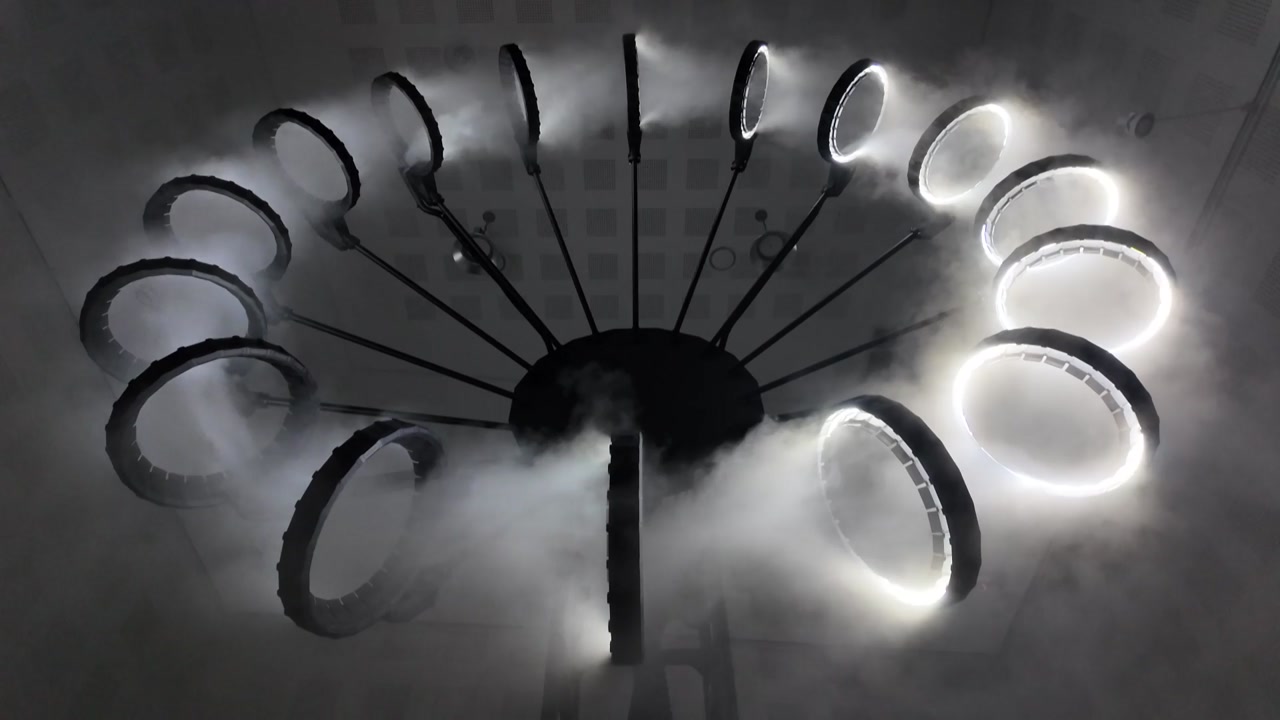 384개의 초소형 팬이 바람을 일으키자 연기는 빛과 함께 커다란 원을 만들고, 이내 사라집니다.