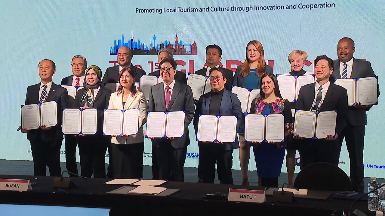 부산시와 14개 나라 20여 개 주요 관광도시가 관광의 미래를 함께 찾는 공동선언문에 서명했습니다.