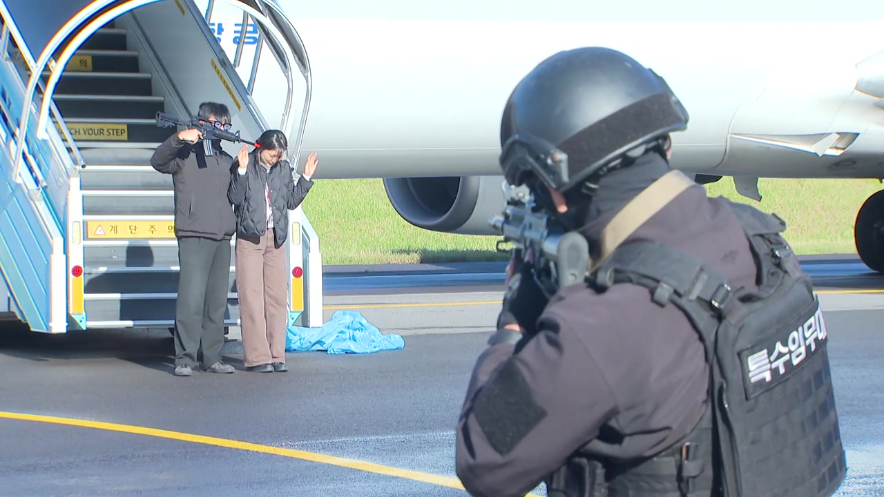 이와 함께 항공기 피랍 상황을 가정해 테러범 진압과 인질 구조, 폭발물·생화학 테러 처리 훈련도 실시됐습니다.