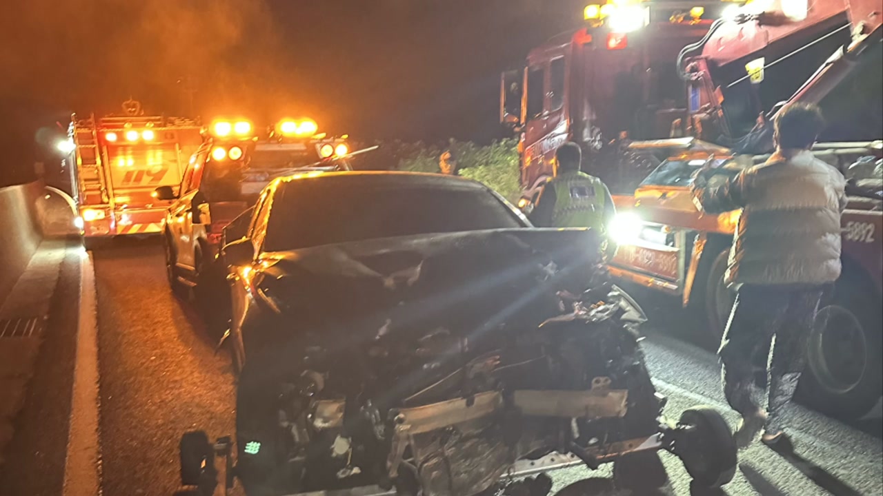 오늘 새벽 1시 50분쯤 경남 함안군 칠서면 중부내륙고속도로 칠서 나들목 근처에서 1차로를 달리던 승용차가 2차로의 트레일러를 들이받은 뒤 멈춰서는 사고가 발생했습니다