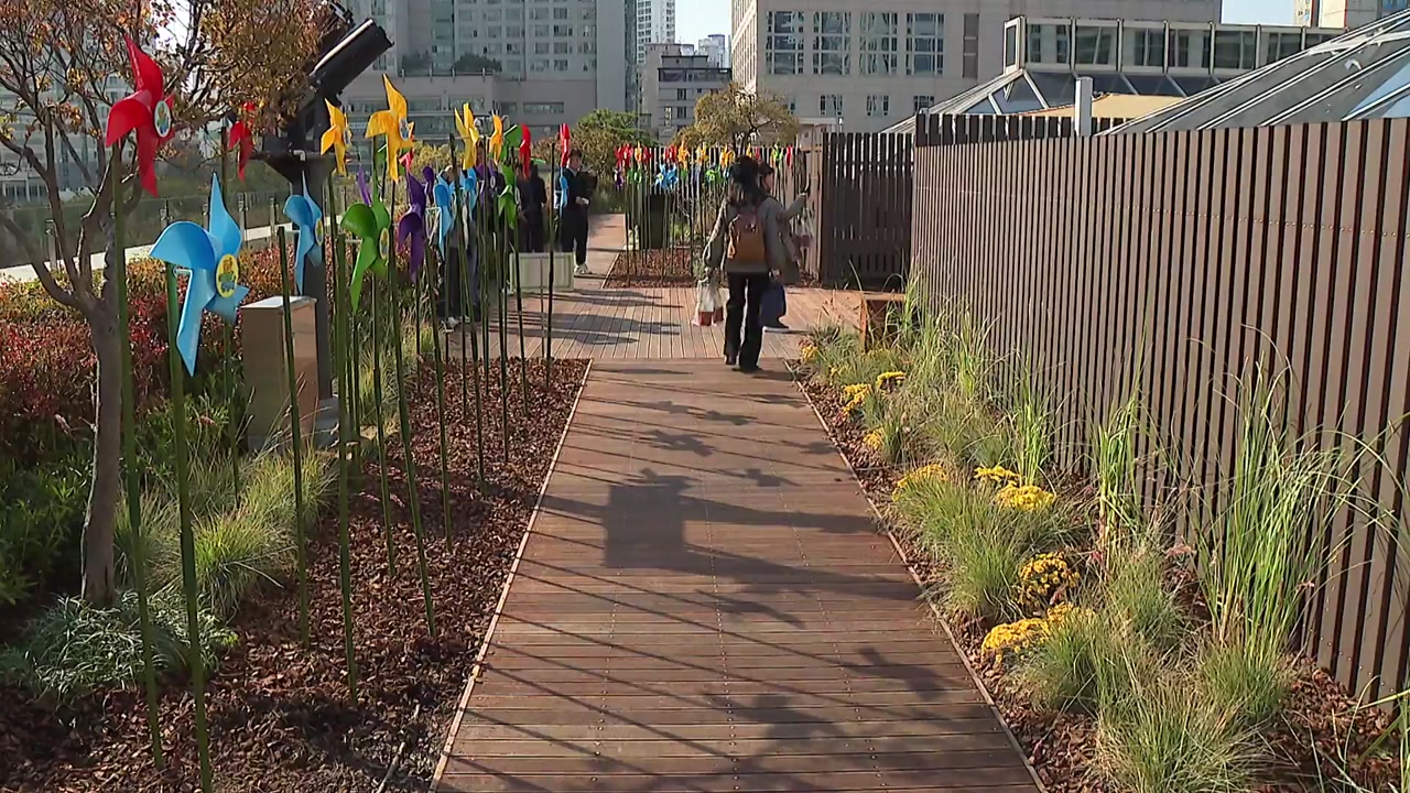 시는 '하늘정원'에 계절감을 느낄 수 있는 정원과 휴식공간, 놀이마당과 온실 교실 등을 배치했고 매일 오전 9시부터 저녁 6시까지를 개방 시간으로 정했습니다.