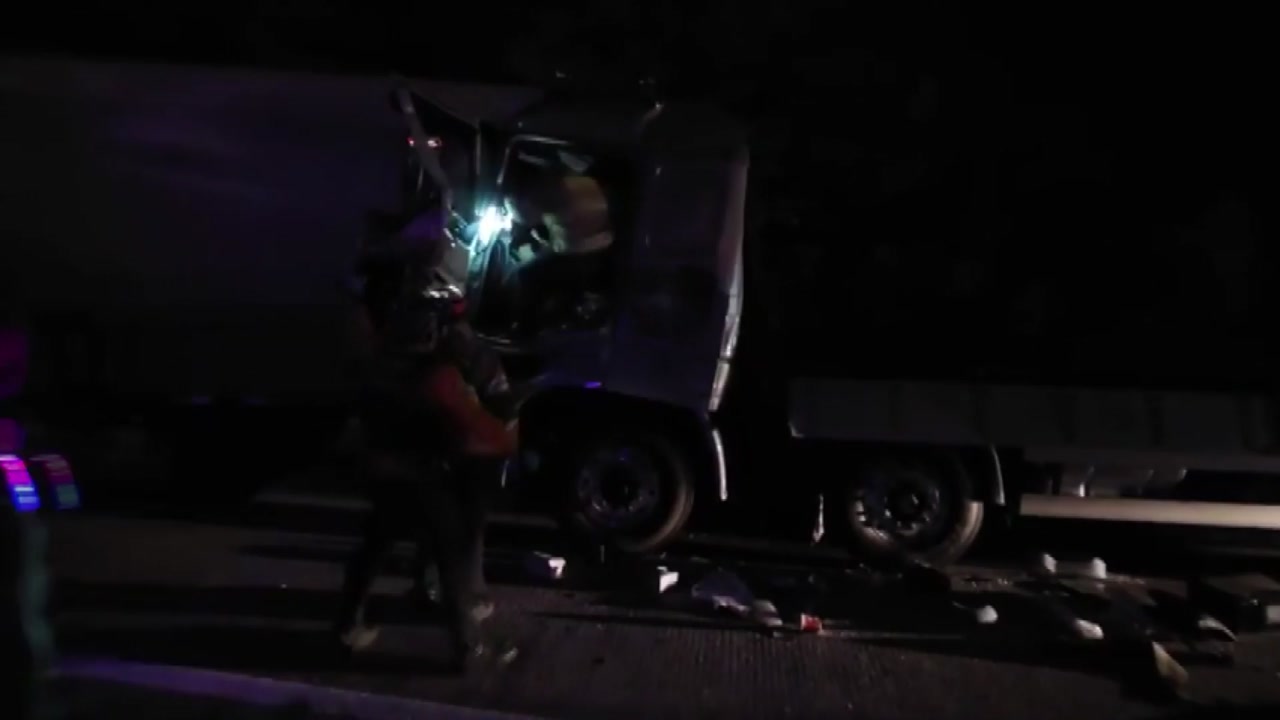 오늘(5일) 저녁 8시쯤 경북 상주시 내서면 영덕 방면 청주-영덕고속도로에서 화물차 두 대가 부딪혔습니다.