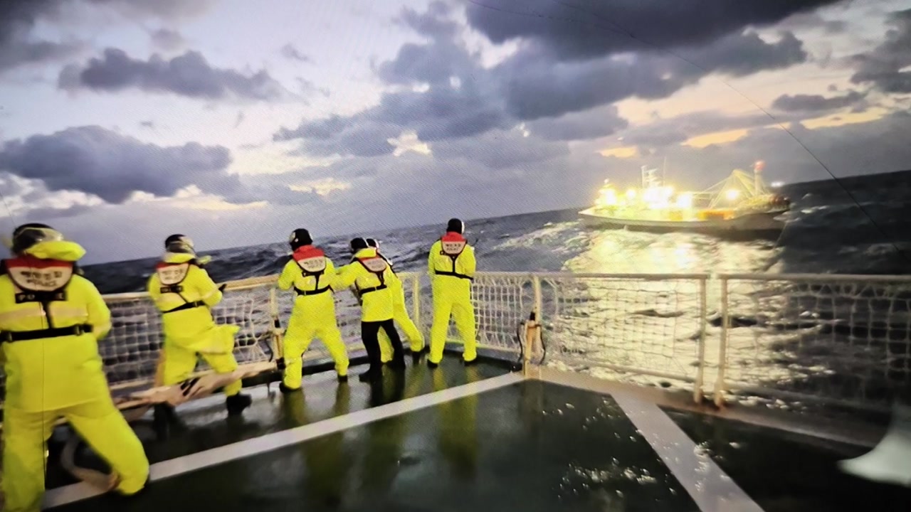 풍랑경보 속 구조대원들은 어선에 예인줄을 걸기 위해 사투를 벌입니다.
