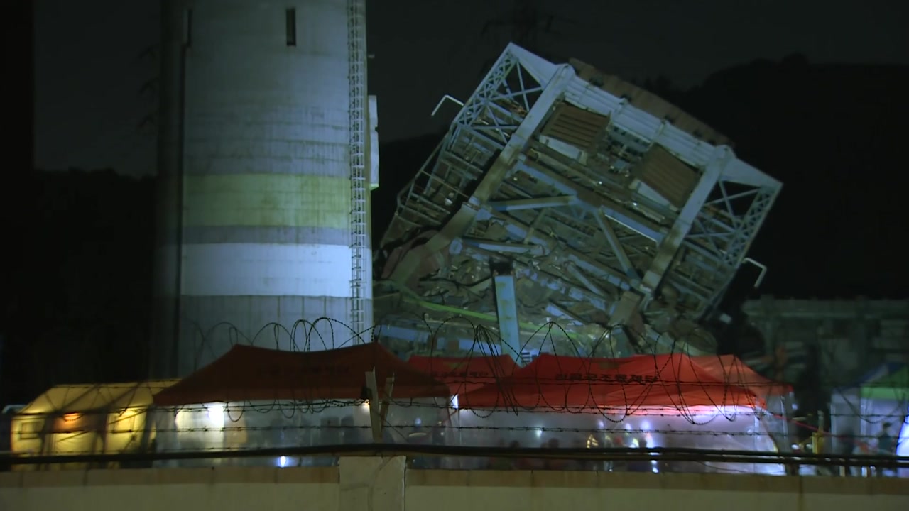 울산 화력발전소에서 보일러타워가 무너지는 사고가 어제 오후 발생한 가운데 매몰자 구조작업이 밤새도록 이뤄지고 있습니다.