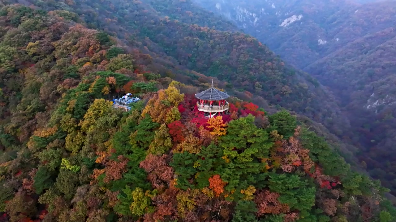 정상에서 시작된 단풍이 물감처럼 번지며 산 전체를 물들였습니다.