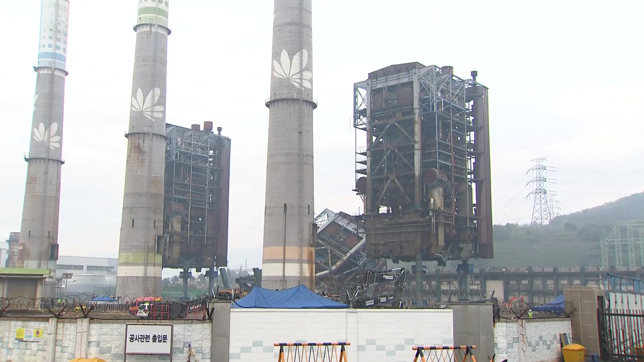 무너진 5호기 옆에 있는 4·6호기 보일러 해체 작업이 시작되면서 내부 인명 수색은 중단됐습니다.