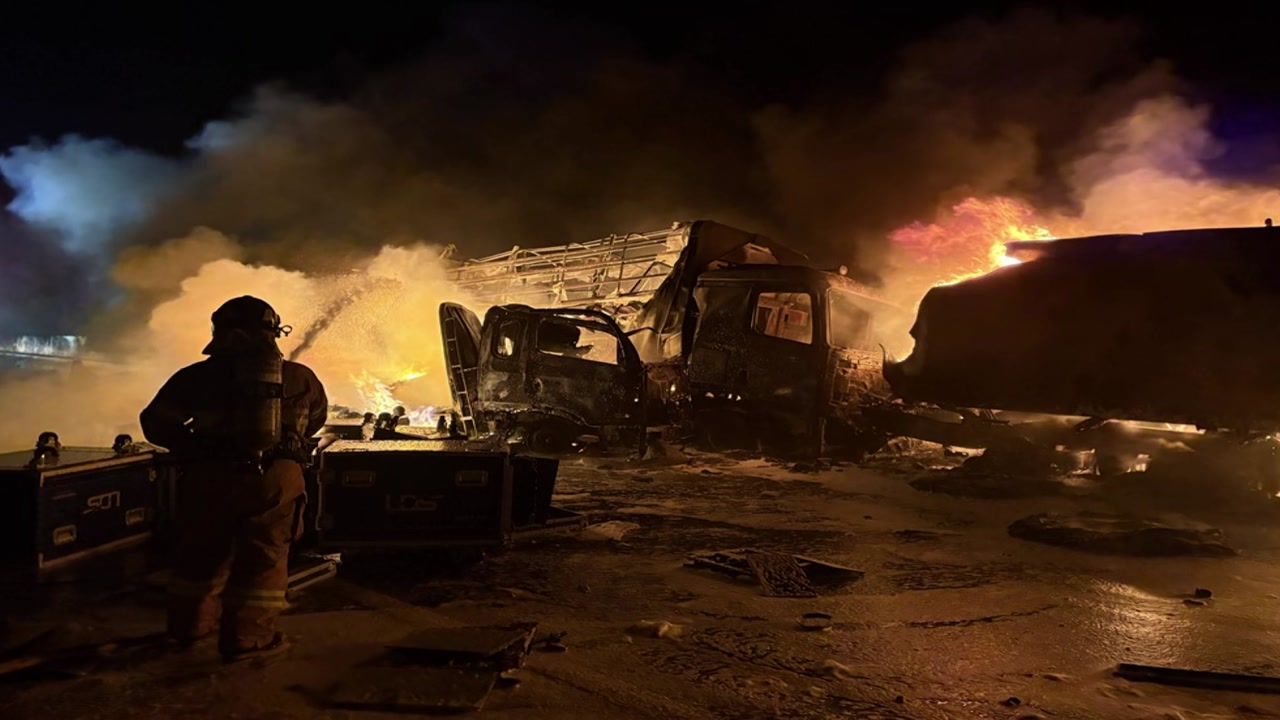 경북 영천시 상주영천고속도로에서 유조차가 앞서 가던 대형 화물차를 들이받은 겁니다.
