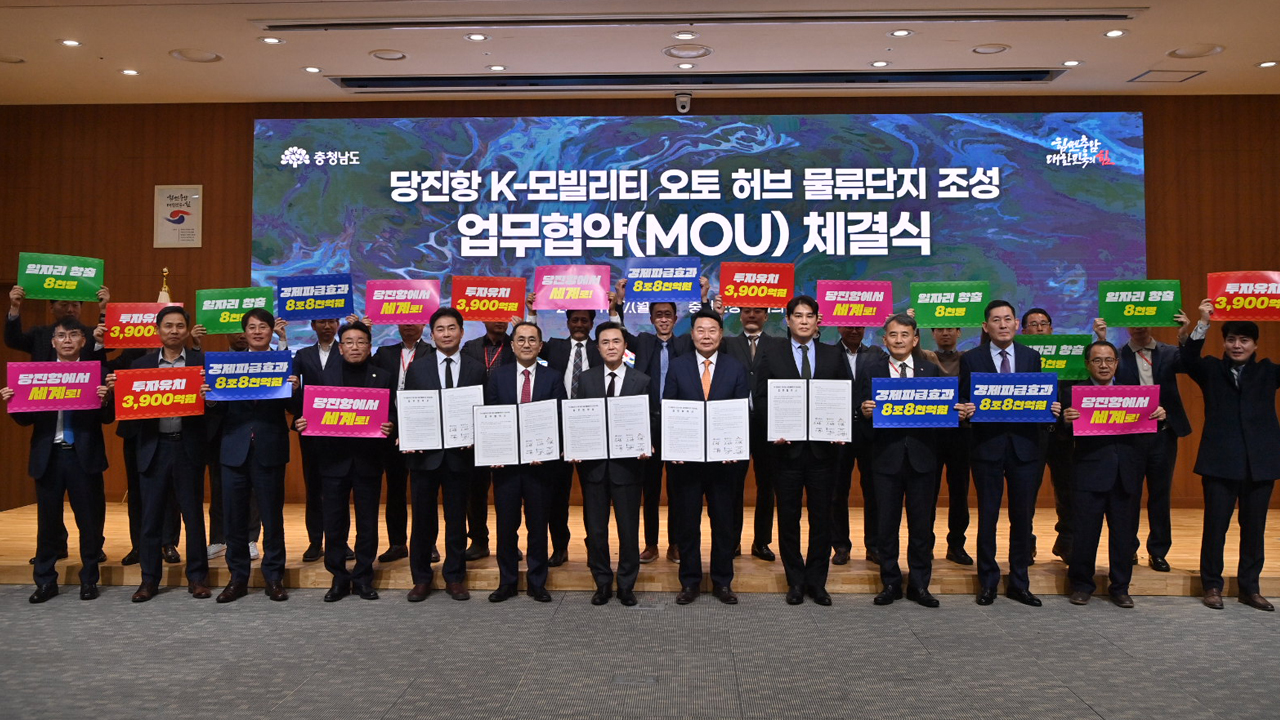 충청남도와 당진시, 케이모빌리티 주식회사 등은 중고차 수출 물류단지 조성을 위한 업무협약을 체결했습니다.